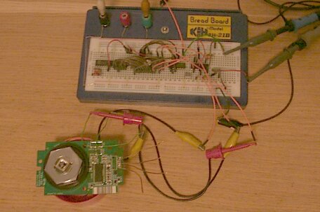 Das EPROM im Beispiel hatte 128 * 64 * 8 bit also ein 64k EPROM (2 Euro?). Die Zähler kosten je einen Euro und der Rest ist für den 2MHz Oszillator (es wurden nur Bauteilekosten auf dem Steckbrett veranschlagt, ach so, ja, der Treiber für den 5. Kanal im 5 Phasensystem, das System habe ich bis jetzt nicht gebraucht.)