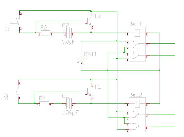 Der Robby fährt vorwärts mit dem einfachen In-Reihe-schalten von zwei normalen Model-Motoren. Wenn die ein (bzw. beide) Tastfühler das Hindernis berühren, werden die Relais eingeschaltet, die einen (nur einer, damit sich der Bot dreht) Motor umpolen. Dadurch fährt er nach hinten-rechts. Der Kondensator ist mit dem Relais parallel geschaltet, damit der Robby nicht gleich nach beendung des Kontaktes mit dem Hindernis wieder vorwärts fährt. Das der Kondensator sich nicht mit einem Schlag entleert soll durch einen Wiederstand (ob davor oder dahinter geschaltet weiß ich nicht) verhindert werden. Sobald die Motoren dann auch keinen Saft mehr durch den Kondensator haben, fährt er wieder vorwärts.