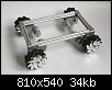 Die Motoren mit den Rädern wurden ihrerseits an einer einfachen Rahmenkonstruktion aus Aluminium-Strangprofilen befestigt. Somit war auf ziemlich simple Art eine mobile Basis mit Mecanum Wheels schnell fertiggestellt: