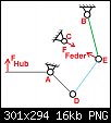 Die Kinematik habe ich anschließend über die Winkelfunktionen in Excel verknüpft, so dass man durch verschieben der Punkte unterschiedliche Kennlinienverläufe ausgeben lassen konnte.
