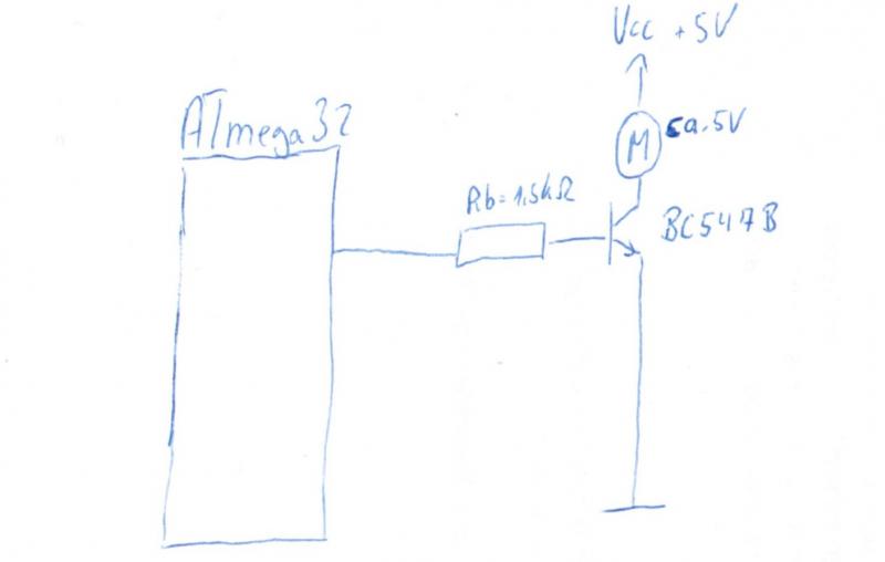 Hallo, ich bin neu hier und habe da mal eine Frage. Ich möchte gerne einen Motor von einem RC-Auto ansteuern. Da ich noch Anfänger bin reicht es mir erstmal nur den Motor zu schalten (nicht zu regulieren). Meiner Meinung nach müsste es doch mit einem Transistor realisierbar sein, oder? Der Motor läuft bei 5V und 400mA. Der Mikrocontroller ist ein ATmega32. In der anhängenden Datei ist mein Schaltplan zu sehen. Dieser funktioniert allerdings nicht. Meine Frage lautet ...