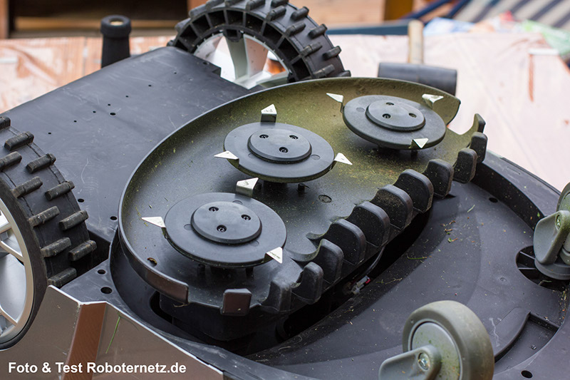 - Steigungen um die 30 Grad kippt den Roboter um, Roboter schaltet dann zwar aus, Messer brauchten aber einige Sekunden bis zum Stillstand (nicht ungefährlich)