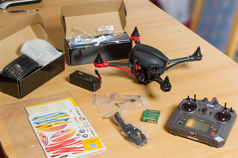 Direkt nach dem Auspacken möchte man ja eigentlich gerne wissen wozu die vielen Kleinteile sind die neben dem Quadrocopter mitgeliefert werden und was man nun zuerst machen muss. Aber gerade das wird in der Anleitung nicht sonderlich klar beschrieben. Man ist daher nach dem Auspacken ein wenig geschockt und fragt sich ob man das auf die Schnelle überhaupt zusammen bekommt, denn eigentlich will man ja gleich starten!