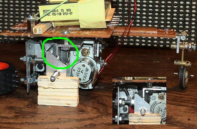 Doch noch ein tieferer Eingriff ins Fahrwerk. Die vier vertikal gelagerten Stoßdämpfer wurden nun durch zwei horizontal gelagerte ausgetauscht. Hab sie gerade noch mit wenig Platzbedarf so unterbringen können, daß das Gewicht des Fahrzeugs in der Waagerechten senkrecht auf die Achsen drückt. Damit sollte der Antriebsblock im Ruhezustand auch in der Waagerechten bleiben. Beginnen die Stepper zu arbeiten, sollen die Drehmomente der Schritte, die den Antriebsblock um die Antriebsachsen vibrieren lassen, vom übrigen Chassis entkoppelt werden.