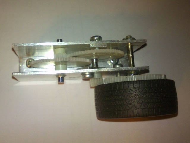 Die Steuerung soll ein kleines PIC übernehmen, vlt. PIC12F675, programmiert in Assembler. Die Planung des Roboters läuft immer nur ein Stückchen vor der Realisierung, also weiß ich nicht was daraus entsteht. Als nächstes kommt der Motor und Getriebe dran, aber dabei muss ich meine Präzision beim Bohren in Alu Blech noch gewaltig steigern. Ich hätte nicht gedacht, dass es so schwierig ist ein Loch im Blech auf <0.1mm genau zu plazieren.