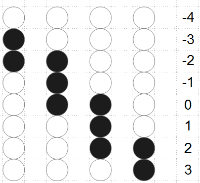 Die schwarze Linie ist ca. 1,5 mal so breit wie der Abstand der Reflexlichtschranken, so dass immer eine oder zwei LS bedämpft sind. Die theoretische Auflösung ist ca. 0,5 x Abstand der LS zueinander. Es ergibt sich folgendes Auswerteschema: