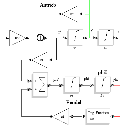 Ich habe die Simulationsdatei „Pendel4.cos“ angehängt. Zur Simulation muss Scilab/Scicos auf dem Rechner installiert sein, es steht hier zum Download zur Verfügung. Nach der Installation reicht ein Doppelklick auf die entpackte Datei „pendel4.cos“ um Scicos zu starten und das Blockschaltbild anzuzeigen.