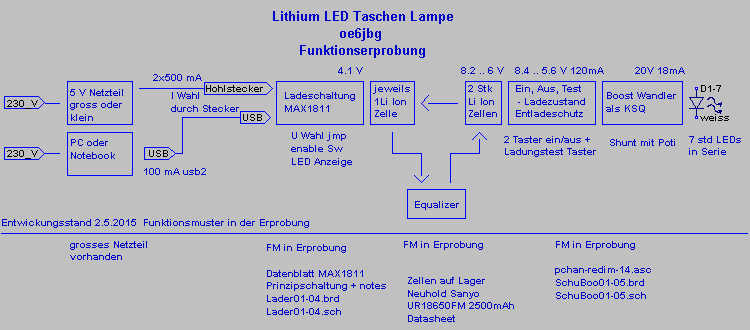 Und so sieht das Funktionsmuster des Lithium Ionen Akku Laders aus.