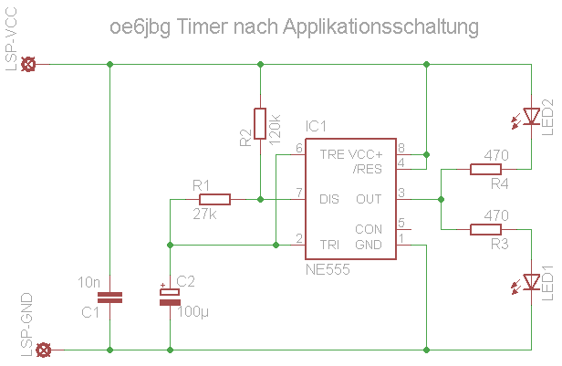 Dazu habe ich eine klassische Timer Schaltung aus dem entsprechenden Datenblatt genommen.