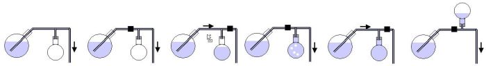 Damit hast Du wieder Gase im Schlauch, die den Versuch stören. Die Verwendung von destilliertem Wasser sollte diesen Effekt verhindern.