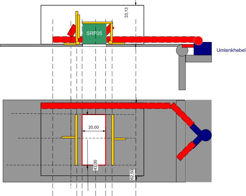 Auf einer Plattform (helltürkises Rechteck) würde ich den Lenkhebel montieren: Die vordere Stange ist dabei fix montiert und die hintere Stange kann sich im Gehäuse bewegen.