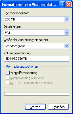 Die Auswahl unter Dateisystem muss natürlich von FAT32 auf FAT (=FAT16) umgestellt werden.