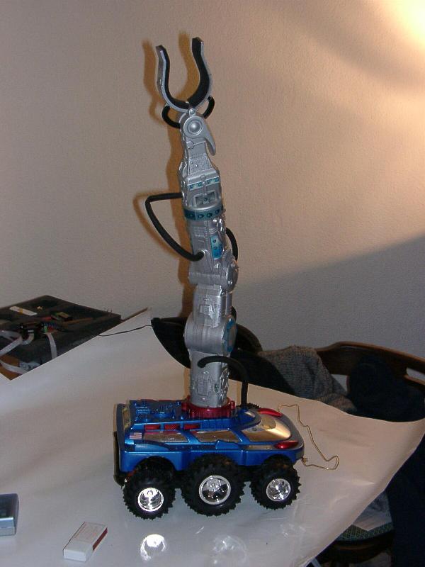 Meiner soll mit einer kamera (conrad) über funk (ca. 300Mhz also analoges Fernsehband) zu meiner TV-Karte funken, was ich dann am Bildschirm sehen kann. Weiterhin bin ich gerade dabei, ein programm zu entwickeln, dass die tasten "oben" "unten" "rechts" und "links" in unterschiedliche frequenzen umsetzt, die ich über einen 200Mhz sender vom Line Out ausgang meiner Soundkarte zum roboter sende. In dem wiederum ist eine C-Control M Unit, die die verschiedenen Frequenzen auswertet und je nachdem, welcher befehl ankommt, entweder den linken oder den rechten motor vor oder zurück laufen lässt.