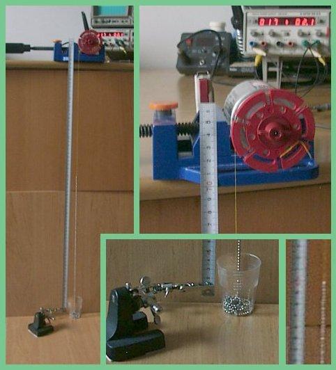 Sie liegt zum Teil am Boden des Bechers. Sie ist mit einem Zwirnsfaden an die Seilrolle mit effektivem Durchmesser von 58mm angebunden. Die Seilrolle ist auf die glattgedrehte Nabe gesteckt und rutscht bei langsam drehendem Motor durch, wobei sich eine konstante Steighöhe der Kette einstellt.